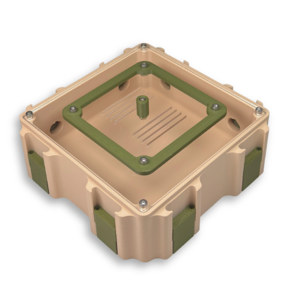 Son ouverture par le dessus permet d’insérer facilement les mangeoires AntWorld ainsi que l’abreuvoir 2 ml, garantissant un accès simple et pratique aux ressources essentielles sans perturber la colonie.