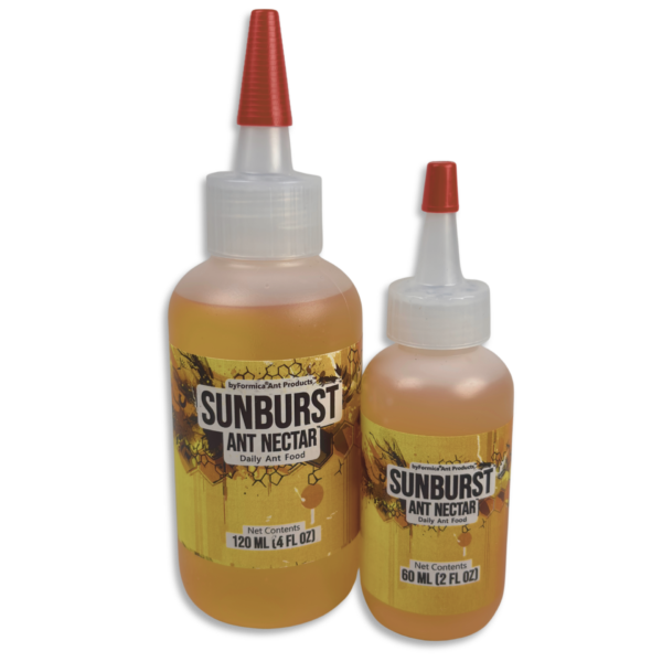 Grâce à sa bonne stabilité, le Sunburst se conserve plusieurs mois après ouverture sans nécessiter de réfrigération, tout en restant appétent pour les fourmis. Pour une alimentation équilibrée, il est recommandé de l’associer à un apport protéiné (insectes, gel protéiné, etc.).